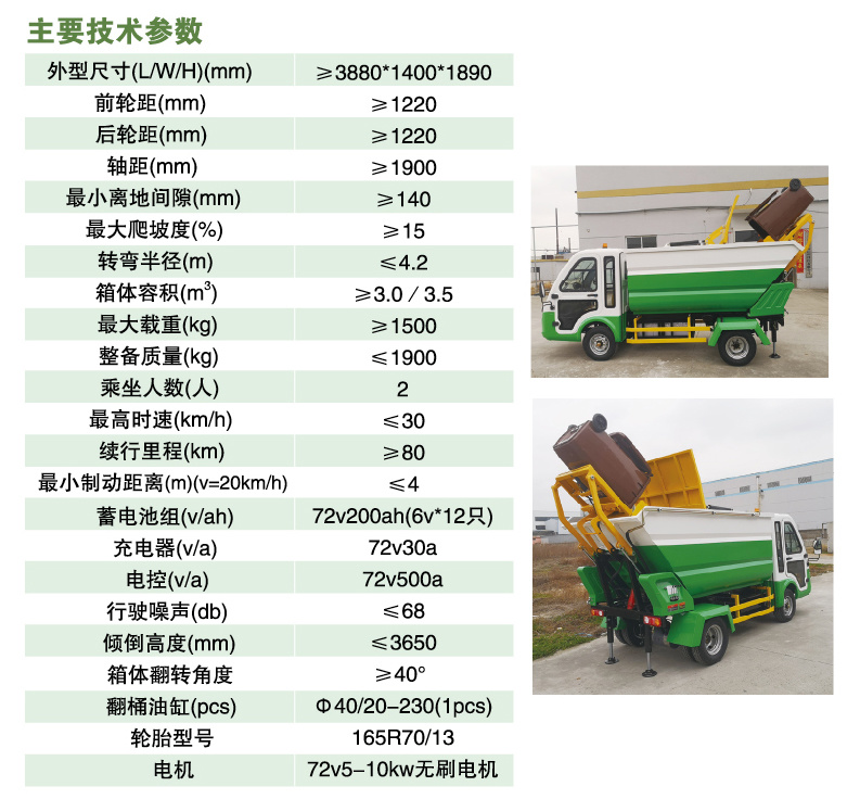 后翻桶式電動(dòng)四輪清運(yùn)車,整車采用觀光車車頭,高強(qiáng)度游艇玻璃鋼材質(zhì),整體成型,線條流暢,堅(jiān)固耐腐蝕,新穎美觀;車廂全封閉不銹鋼箱體,防銹力強(qiáng)。廣泛應(yīng)用于中心城區(qū)、居民小區(qū)、酒店、食堂、醫(yī)院等各類桶裝垃圾的收集轉(zhuǎn)運(yùn)。